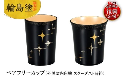 輪島塗 ペアフリーカップ(外黒塗内白塗 スターダスト蒔絵)
