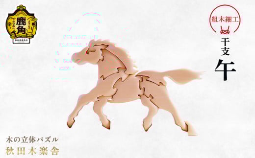 秋田木楽舎 組木細工 干支「午」(うま)【木楽舎】 木 木育 パズル おもちゃ 子供 玩具 組み立て 立体 インテリア お祝い 節句 プレゼント 贈り物 ギフト 贈答 秋田県 秋田 あきた 木楽舎 鹿角市 鹿角 かづの