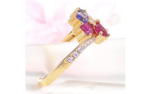 - 指輪 K18YG イエローゴールド ダイヤモンド 0.3ct ルビー タンザナイト フラワー 花束 ブーケ レディース リング カラフル 誕生石 【f283-k18yg-ruta】 ジュエリー アクセ アクセサリー [オーダーメイドジュエリーメイ 山梨県 韮崎市 20745217-s]