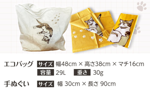 - 【猫グッズ】ネコのかわいい手ぬぐい2点+エコバック2点 猫 贈答 ギフト 産地直送 取り寄せ 送料無料 大阪 大阪府高槻市/ネコシステム [AOBX006] かわいい 猫 ねこ ネコ グッズ セット