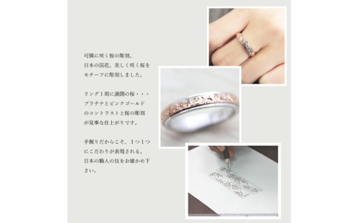 指輪 プラチナ PT900 K18PG ピンクゴールド コンビ 15号〜22号 メンズ リング 桜 手彫り彫刻 18金 マリッジリング 和風 アクセサリー ジュエリー アクセ 【239-ptpgm】 [オーダーメイドジュエリーメイ 山梨県 韮崎市 20745071-b]