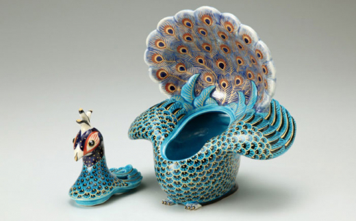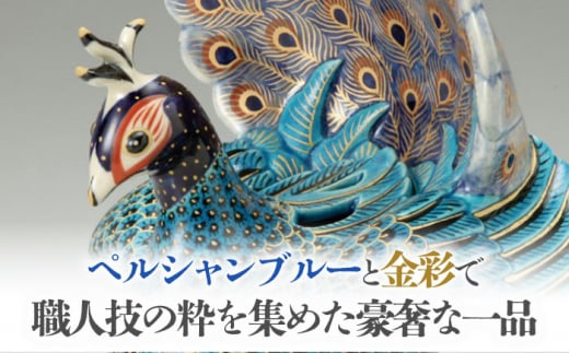 - 【美濃焼】 青釉色絵孔雀香炉 クジャク 青 置物 多治見市/幸兵衛窯 [TAI031]
