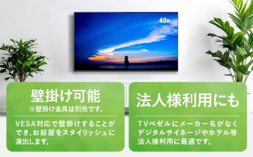 - 【最短4日発送】 チューナーレステレビ 40型 ダイコーアペックス 液晶モニター (AP40APX) セカンドテレビ 40V 子ども用 寝室用 フルハイビジョン 壁掛け可能 VESA対応 家電 電化製品 40インチ 法人用にもおすすめ ホテル 学校 病院 デジタルサイネージ ダイコーアペックス 送料無料 山梨県上野原市