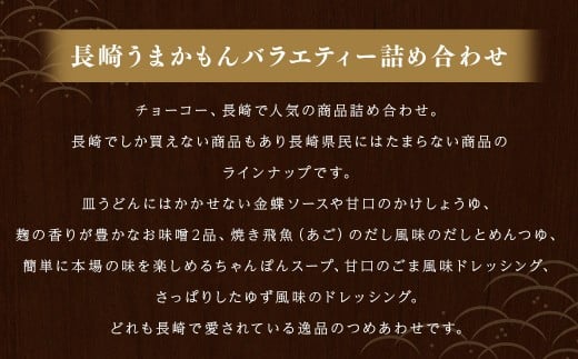 長崎うまかもんバラエティー詰合わせ / 10種類 醬油 しょうゆ 出汁 だし あごつゆ かけぽん ちゃんぽんスープ ウスターソース ドレッシング 味噌 みそ 調味料 長崎 チョーコー醤油