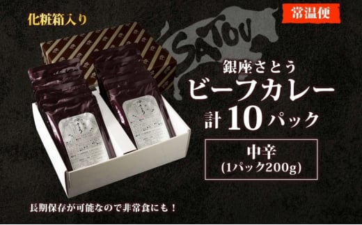 - 銀座さとうビーフカレー200g×10個入 中辛 国産 黒毛和牛 バラ肉 モモ肉 牛肉 惣菜 オリジナル レトルトカレー スパイシー 薫り 豊か あじわい 夕飯 ランチ ギフト 贈答品 簡単調理 長期保存 備蓄 防災 非常食