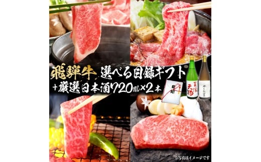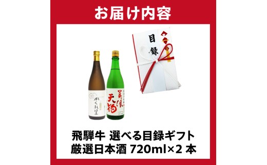 5-5 飛騨牛 選べる目録ギフト + 厳選日本酒720ml×2本【岐阜県 可児市 酒 日本酒 飲料 地酒 アルコール 手作り ギフト プレゼント お祝い 目録 肉 牛肉 】