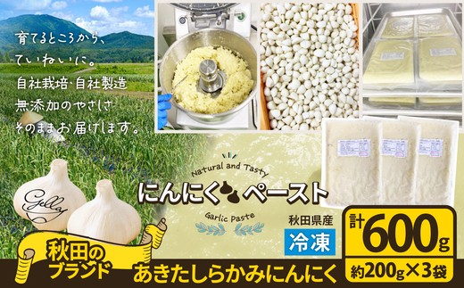 あきたしらかみにんにく 冷凍ペースト600g 40P3220 / にんにく ニンニク 東北 秋田 大館 国産 薬味 スタミナ 野菜 お得 大容量 600g ペースト 冷凍 すりおろしにんにく おろしにんにく ガーリック ガーリックペースト 小分け 便利
