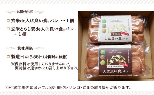 - 55P3001 玄米de人に良い食パン・玄米ともち麦de人に良い食パンのセット / 東北 秋田 ギフト プレゼント 贈り物 母の日 父の日 敬老の日 誕生日 記念日 食パン パン グルテンフリー 保存料不使用
