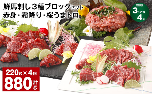 【3ヶ月毎4回定期便】鮮馬刺し 3種ブロックセット 赤身・霜降り・桜うまトロ