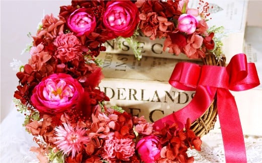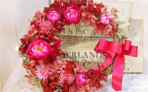 【赤色系】バラと紫陽花のハーフムーンリース M【2026年1月上旬から発送開始】