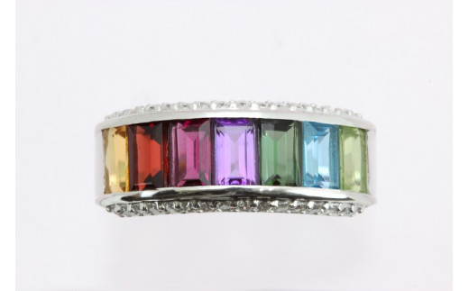 【サイズ:8.5号】< 甲府ジュエリー >K18WG アミュレット メレダイヤ リング【KE-1757】