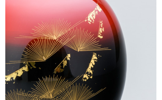 輪島塗〈大藤漆器店〉花器 球型 黒朱ぼかし 雅松沈金[髙島屋選定品]
