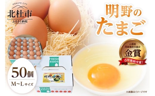 - 金賞受賞 明野のたまご50個 卵 鶏卵 M~L サイズ 知事賞 金賞受賞 たまご コク 旨味 濃厚 山梨県 北杜市産 明野 ハイチック