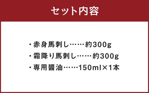 【桜屋】 赤身 霜降り 馬刺し 食べ比べ (各300g) 計600g (専用醤油付き 150ml×1本) / 醤油付 馬肉 お肉 肉 肉刺し 生食用 セット 九州 熊本県 水上村 冷凍