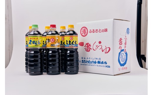 - しょうゆ みなとしょうゆ詰合せ 醤油 詰合せ 3種1L×6本セット 醤油 セット 一番しょうゆ 甘露 うまくちしょうゆ うすくちしょうゆ 薄口 濃口 九州 詰め合わせ 送料無料 みなとしょうゆ醸造元