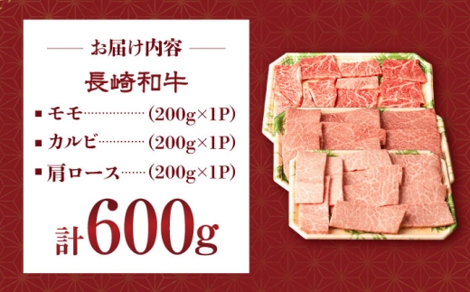 長崎和牛焼肉セット(モモ200g・肩ロース200g・カルビ200g) 計600g 長崎県/有限会社シュシュ [42AEAA030]