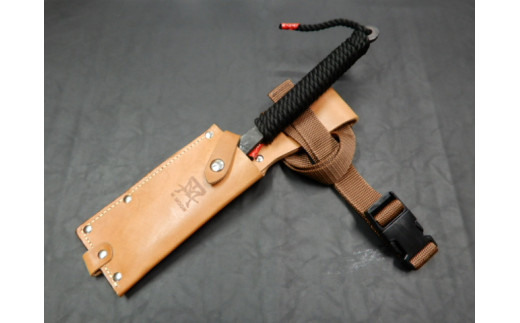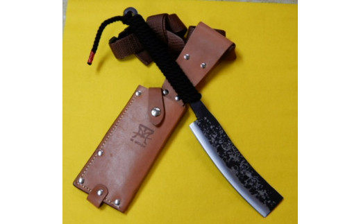 - E-36 共柄反刃鉈 白紙二鋼割込(両刃)黒ロープ巻 レザーサック付