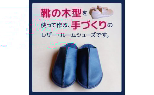 タンニンレザーのルームシューズ【コバルトブルー】Mサイズ ( 22.5 ~ 24.5cm ) | 靴 ルームシューズ タンニンレザー 長野県 松本市 ふるさと納税