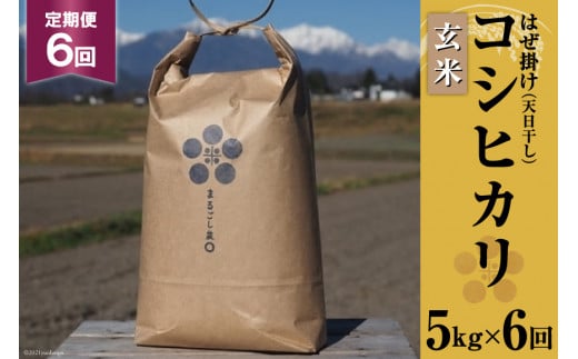 - 米 令和7年 6回 定期便 栽培期間中農薬・化学肥料不使用 はぜ掛け 天日干し コシヒカリ 玄米 5kg×6回 総計30kg [まるごし農園 長野県 池田町 48110715] お米 こしひかり 美味しい 池田町産 はぜ掛け米 はぜかけ米