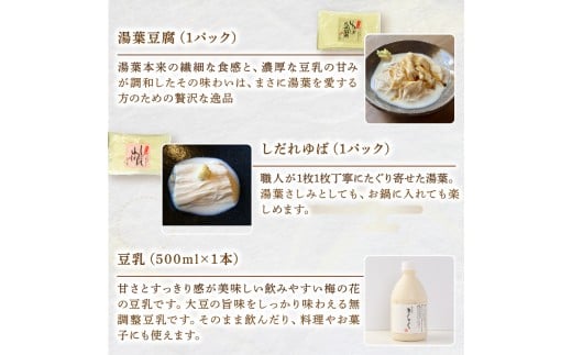 - 豆腐 食べ比べセット6種 湯葉 湯葉豆腐 木綿豆腐 絹ごし豆腐 厚揚げ豆腐 豆乳 豆腐 とうふ ゆば 豆乳飲料 しだれゆば 湯葉丼 湯豆腐 料理 大豆 健康 鍋 梅の花 食べ比べ 食べくらべ お取り寄せ セット ギフト 贈答 プレゼント お中元 御歳暮 贈り物 京都 京都府 井手 井手町 【049】