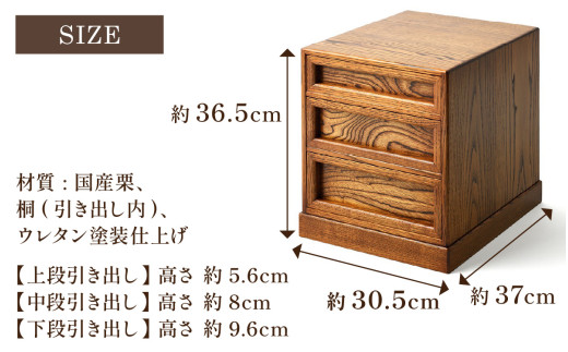 - 三つ引きタンス|箪笥 タンス たんす 収納 3段 三段 桐 希少 職人 職人技 手作り 家具