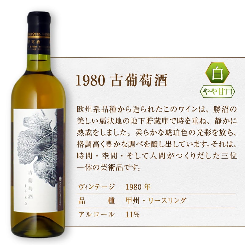 『希少!40年超熟成ワイン』1980古葡萄酒【白】まるき葡萄酒(MG)G1-660 【ワイン まるき葡萄酒 白ワイン 甲州市 山梨県 】