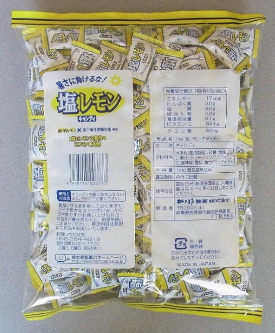 - 1099 【3月~9月受付限定】桃太郎製菓 塩レモンキャンディ 1kg×1袋 塩あめ 塩分補給 夏バテ防止 熱中症対策 運動 スポーツ 夏 屋外作業 業務用 大容量 大袋 個包装