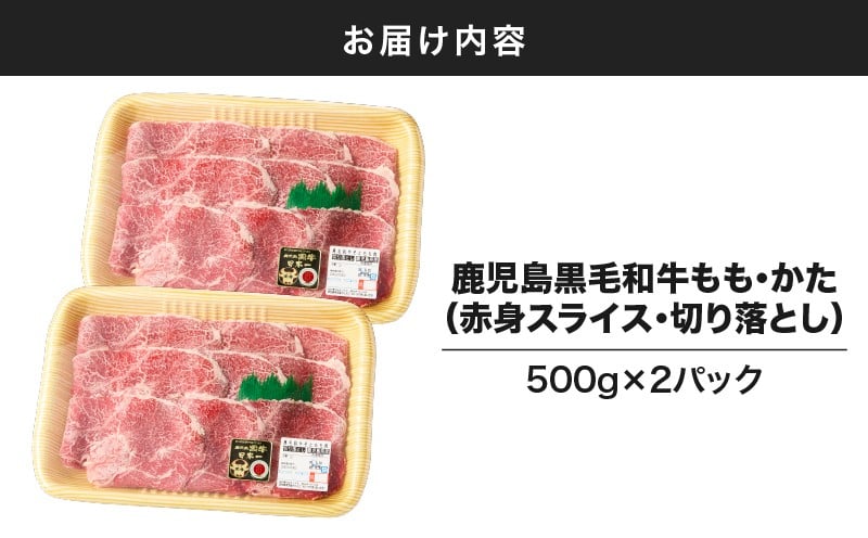 1415 鹿児島黒毛和牛もも・かた(赤身スライス・切り落とし)1kg KN036-009