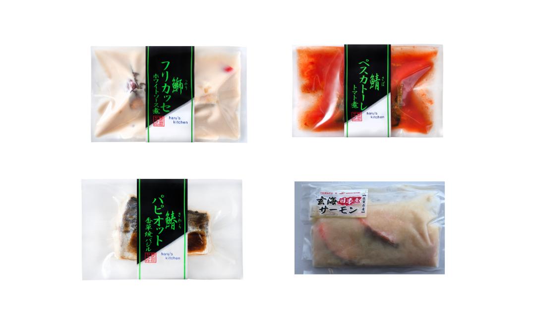 - 【セット】洋風焼魚8食セット(さばトマト煮、ぶりクリーム煮、サーモンクリーム煮、さわら香草焼)