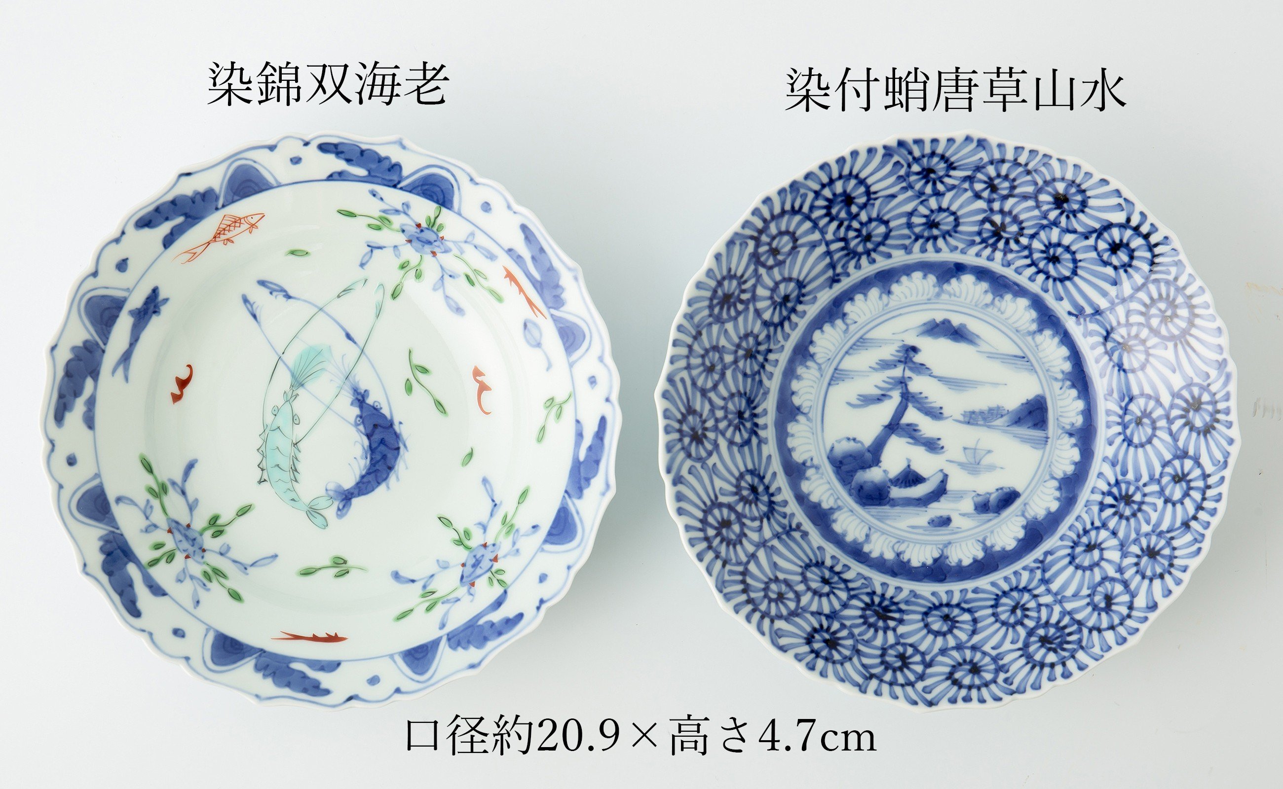 - 有田焼 絵柄の選べる 桔梗渕7寸中鉢 (染錦双海老/染付蛸唐草山水 ※柄をお選びください。) 渓山窯