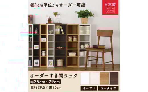 - 【国産家具】オーダーすき間ラック〔オープン・ロータイプ 25cm~29cm 〕(選べる4色×5サイズ)すき間ラック 日本製 国産 隙間収納 ラック 本棚 スリム 薄型 縦長 オーダー 棚 隙間収納棚 隙間 木製 ABEE02520