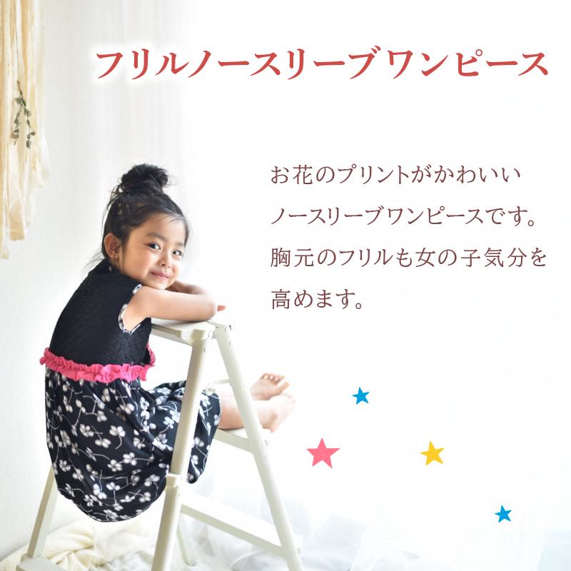 【選べるサイズ】 フリルノースリーブワンピース 90cm 100cm 110cm 120cm ファッション キッズ こども 子ども 子供 子供服 女の子 小学生 ブランド ワンピース 人気 おすすめ ふるさと納税 京都 八幡 八幡市 MOEMUSISAN