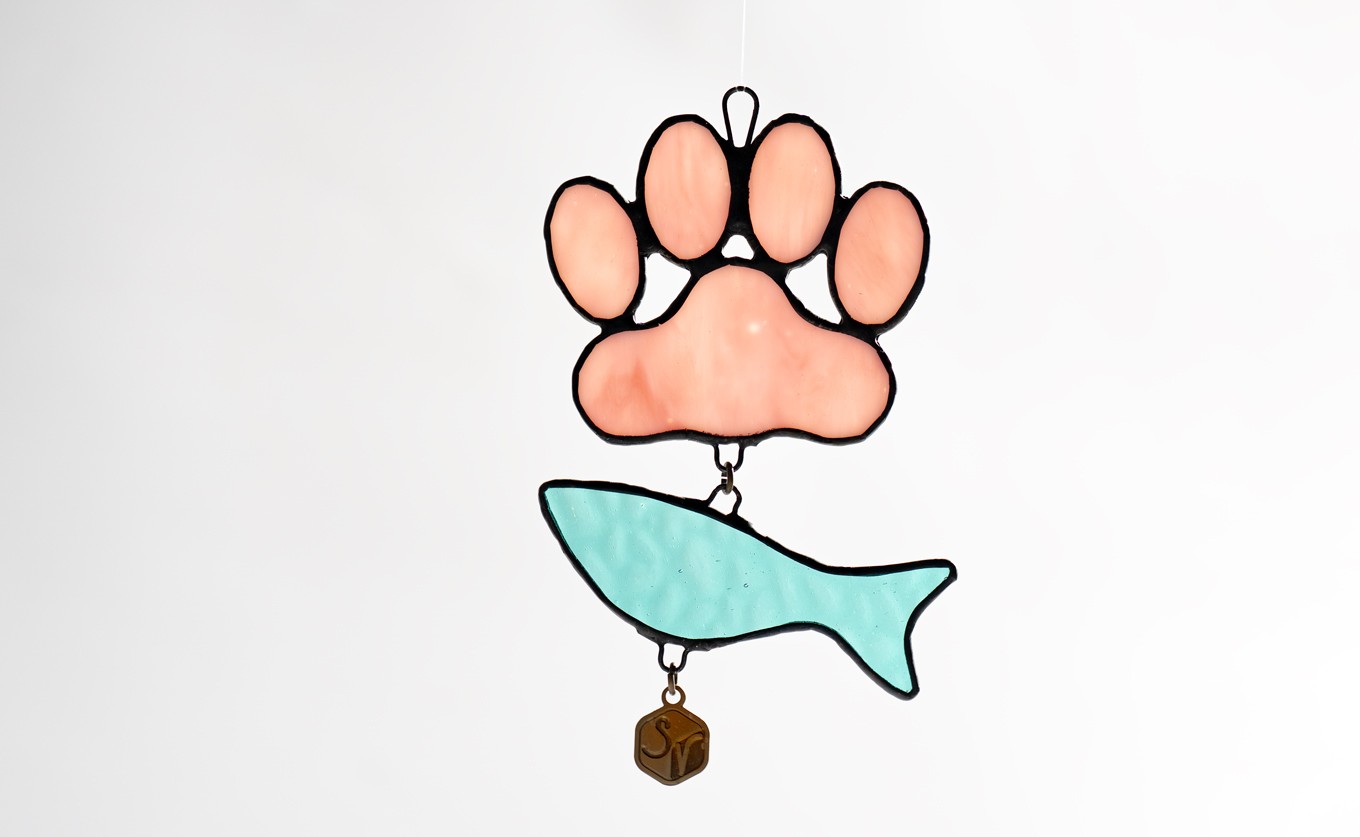 - ステンドグラス 猫の肉球 にゃんにゃん お魚 モチーフ オーナメント 手作り インテリア雑貨 ハンドメイド 雑貨 癒し グッズ 室内飾り リラックス ギフト プレゼント 新生活 贈り物 お祝い 室内装飾 オフィス飾り おしゃれ インテリア小物