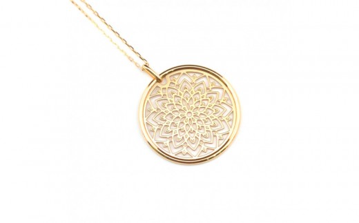 【18金イエローゴールドネックレス 二つ菊ペンダントトップ グリームカット長小豆0.25φ 45cm】富山県 富山市 贈り物 おすすめ ギフト 記念