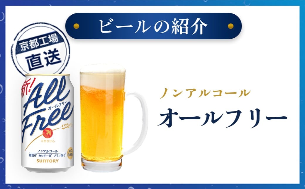 <6ヶ月定期便>【京都直送】<天然水のビール工場>京都産 オールフリー500ml×24本 計6回お届け ふるさと納税 定期便 6か月ノンアルコールビール サントリー ノンアルコール 工場 直送 天然水 健康意識 糖質 ゼロ 制限 京都府 長岡京市 NGAG14