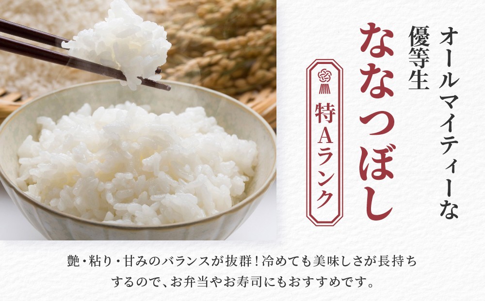 - ◆ふるさとチョイス限定◆【3回定期便】令和7年産 ななつぼし 5kg×1袋 3ヶ月隔月発送【 特A 北海道産 白米 精米 ご飯 ごはん 米 5kg お米 ななつぼし 旭川市ふるさと納税 北海道ふるさと納税 旭川市 北海道 】_05538
