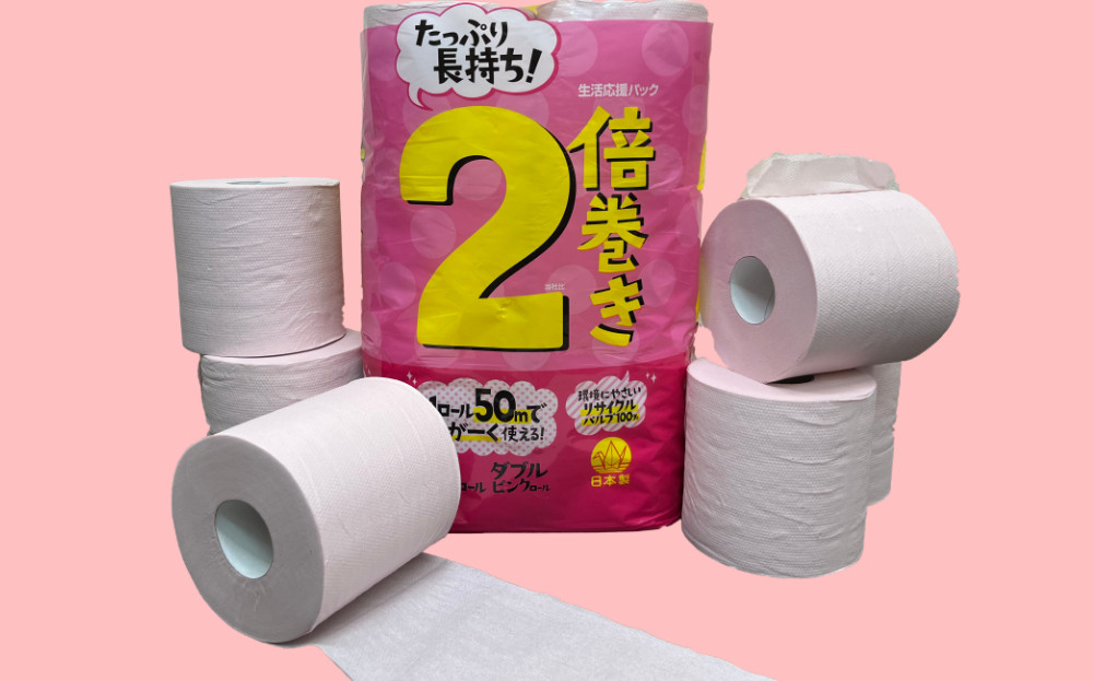 - トイレットペーパー ピンク ダブル 96ロール 4800m(12ロール×8パック×50m)