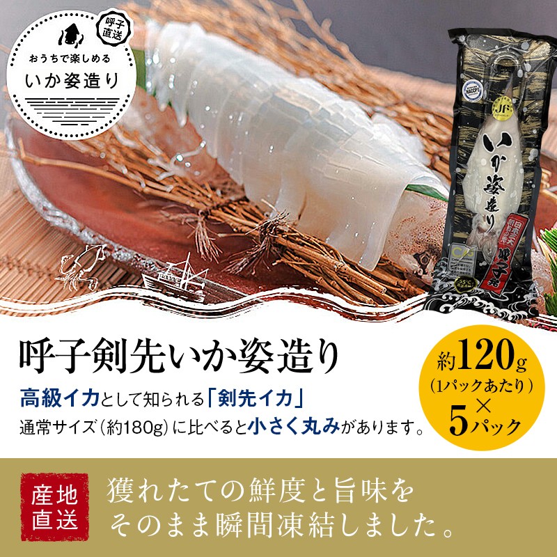 「佐賀呼子」剣先イカ姿造り(120g×5杯)