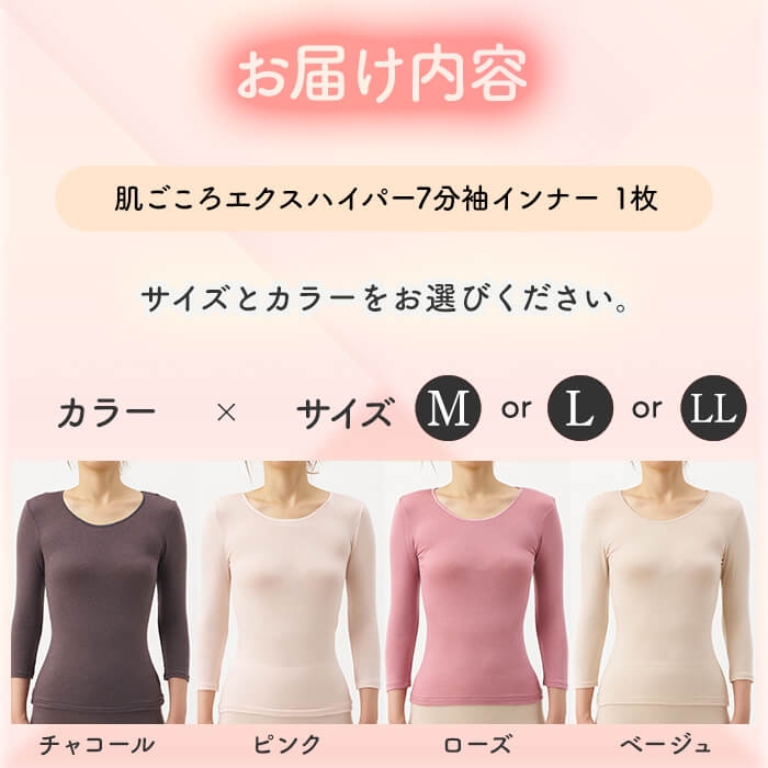 <期間限定><選べるサイズ・4カラー>肌ごころエクスハイパー7分袖インナー(1枚/M~LL/カラー4色) 【m84-01】【アズ】