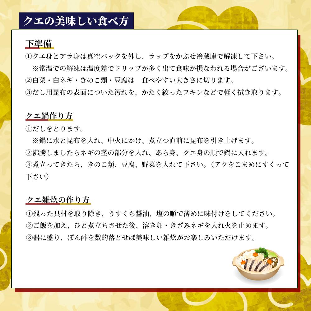 - 紀州の最高級天然クエ鍋セット 1kg《4から5人前》