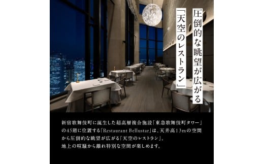 BELLUSTAR TOKYO, A Pan Pacific Hotel 天空のレストラン「Restaurant Bellustar」ペアディナーコース(ワンドリンク付き)券 食事券 チケット ディナー コース 2名 ペア 東京 新宿 ホテル レストラン 高級 歌舞伎町タワー フレンチ 0066-002-S05