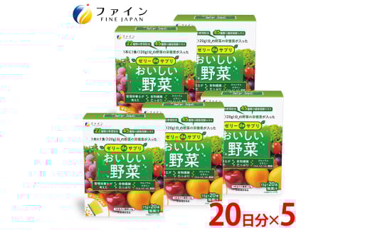 【ファイン】ゼリーdeサプリ おいしい野菜20包×5個セット | ゼリー サプリ 野菜ゼリー サプリメント 健康 スティックゼリー 野菜120g分 栄養素 食物繊維 カリウム カルシウム ビタミンA ビタミンC ビタミンE 野菜不足 手軽 健康維持 持ち運び便利 オレンジ風味 美味しい 食べやすい 管理栄養士監修 日本製 ISO9001認証 野菜摂取 手軽 兵庫県 上郡町
