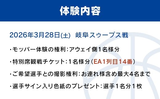 - C8-05A【3月28日岐阜スゥープス戦アウェイ席】新潟アルビレックスBB HG公式戦モッパー体験+特別席観覧チケット