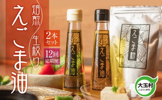 - えごま 油 2本 セット 定期便 (全12回) 生搾り 焙煎 各95g 福島県 大玉村 産 無農薬 |オメガ3 α-リノレン酸 健康 美容オイル|エゴマ油 えごま油 荏胡麻油 エゴマ えごま 荏胡麻 食用油 セット 島根 松江 人気 おすすめ 国産 無着色 低温圧搾 コールドプレス オイル 油 調味料 健康 美容 リノレン酸 ご当地 グルメ お取り寄せ ギフト 贈り物 贈答 01122-t12