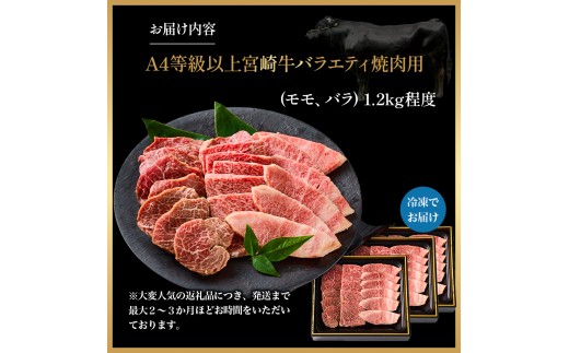 【西ノ原牧場直送】大人気!A4等級以上宮崎牛バラエティ焼肉用 1.2kg(国産 国産牛 肉 牛肉 宮崎牛 黒毛和牛 お肉 モモ 赤身 A4 A5 焼肉 内閣総理大臣賞4大会連続受賞 特別提供)