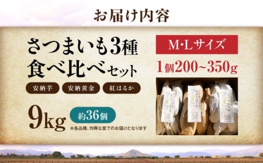 【厳選】3種食べ比べ 熟成 さつまいも 9kg 紅はるか 安納芋 さつまいも サツマイモ さつま芋 さつまいも 芋 いも 焼き芋 やきいも 滋賀 スイーツ 滋賀県長浜市/好作豊吉 [AQCF019]