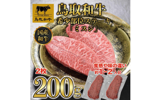 - 鳥取和牛希少部位ステーキ「ミスジ」2枚(200g) 670【牛肉 肉 焼肉 焼き肉 やきにく 最高級 ブランド牛 ギフト 贈り物 プレゼント 人気 おすすめ 鳥取県 琴浦町 送料無料】