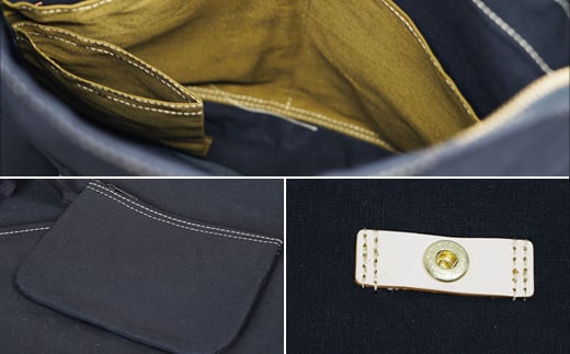 ハンドメイド 3WAYトートバック 帆布 本革 多機能 A4 対応 紺