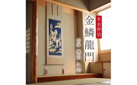掛け軸「本金押箔 金鱗龍門」 奥田久志 尺五立 サイズ:53×190cm 桐箱付 掛け軸 和室 おしゃれ 日本画 表装 床の間