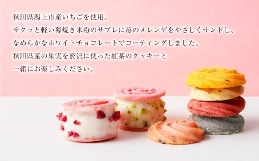 プリンセス ローズ ~苺のエアリーサンド~ ブーケ缶 焼き菓子 詰め合わせ 計25個 秋田県産 いちご サキホコレ 米粉 クッキー サンド スイーツ お菓子 洋菓子 フルーツ ギフト 贈り物 【パティスリー・パルテール】